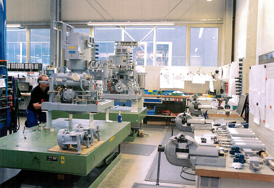 Verdichterwerkstatt für Sauer-Kompressoranlagen mit Prüfstand bis zu einem atmosphärischem Enddruck von 300 bar